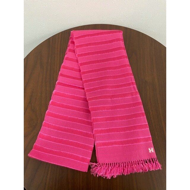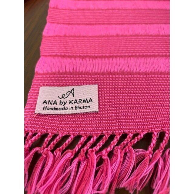 最も明るいプリンセスピンクでデザインされたこの鮮やからなスカーフは、ブータン東部の村に住む女性達により手作りされています。